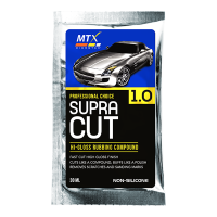 SupraCUT is an advanced compound that is designed to remove heavy defects such as sanding marks, heavy scratches, swirls marks and heavy oxidation all quickly and easily with the workability of a polish. SupraCUT features an abrasive technology that keeps on working and working pass after pass while leaving a finish normally found in heavy polishes. SupraCUT incorporates proprietary oils that provide a long working time, keeping the pads suspended in oils to keep the pads from scouring the finish, reducing the chances of re-introducing swirls and haze.