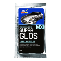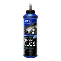 SupraGLOS is the latest one step product to revolutionize paint care. It acts as a paint cleaner, filler and finishing polish. SupraGLOS can easily remove hard baked on road grime and paint stains restoring the brilliance and color of the paint. Ultrafine polishes further enhances the smoothness and slickness of the paint all without reducing the paint layer. Fillers conceal minor imperfections such as hairline swirls and scratches to further enhance the paint definition and clarity. SupraGLOS is the one step solution to maintaining new cars and restoring old cars to look like new.