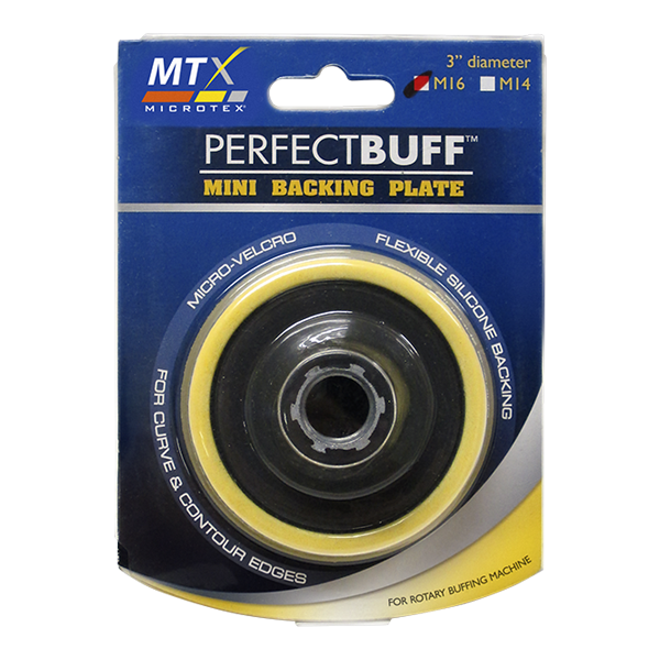 MTX® Microtex® PerfectBUFF™ Mini Backing Plate is made of durable soft gel type foam making it ideal for buffing those curved and contoured edges. Its gel type foam adjusts to every contour you buff on while maintaining its shape providing the most consistent pressure on different surfaces. It is the perfect partner for all small sized foam pads.