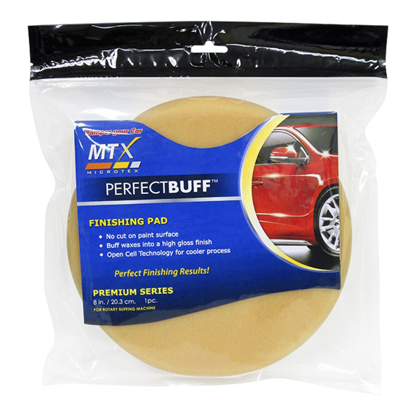MTX® PerfectBUFF™ PREMIUM Finishing Pad makes buffing those hard to reach areas and contours trouble-free. It is the safest way to buff waxes and glazes to produce a high gloss show car shine. It provides no cut and is paint safe perfect for applying waxes and glazes without marring the paint. Made of the softest 95 PPI open cell U.S. Foam designed to be gentle even on the softest paints.