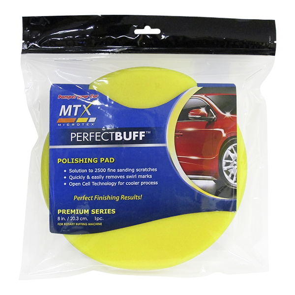 MTX® PerfectBUFF™ PREMIUM Polishing Pad makes buffing those hard to reach areas and contours trouble-free. It is the fastest solution to holograms and 2500 and finer sanding scratches. It quickly removes swirl marks and light scratches. The best way to achieve that most coveted show room shine is to use MTX® PerfectBUFF™ Polishing Pad. Made of durable 80 PPI open cell U.S. foam designed to run cool and smooth to make that final polishing step a breeze.