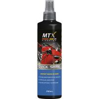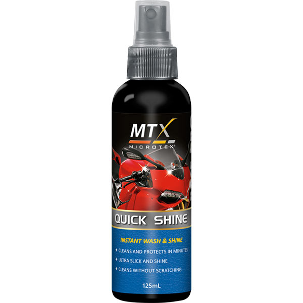 MTX® QUICK SHINE is the quickest and easiest way to clean and protect your bike in one simple and easy step. MTX® QUICK SHINE is made of proprietary polymers that encapsulate dirt allowing it to be safely remove without scratching your paint. Polymers and waxes then create an ultra-slick and glossy protective layer on the paint. QUICK SHINE allows you to clean and protect your bike in minutes without the hassle of bringing out the bucket and hose.