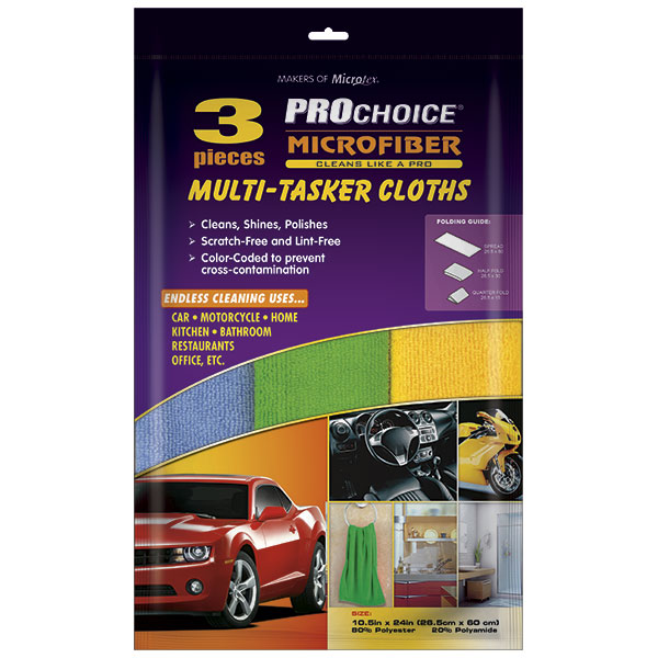 PROChoice® Multi-Tasker Microfiber Cloths. Made from the same ultra-fine threads that made our brand popular, these cloths are guaranteed to give you unparalleled absorbing, cleaning, dusting, buffing and polishing capabilities.